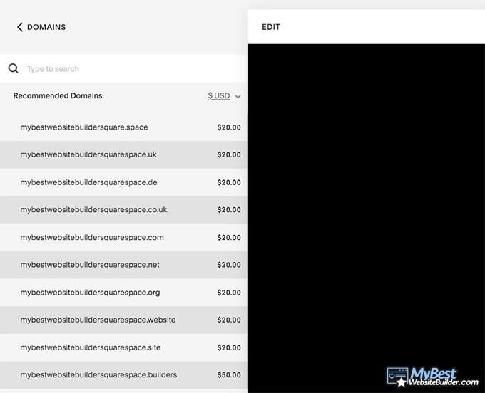 Le nom de domaine peut être choisi directement depuis Squarespace. Une fois que vous avez compris comment créer un site internet Squarespace et que avez choisi le plan qui vous convient. Cependant, vous pouvez également le faire à partir du site Web officiel de la marque - c'est une bien meilleure option si vous souhaitez créer un nom de domaine personnalisé, sans le suffixe «.squarespace.xyz».